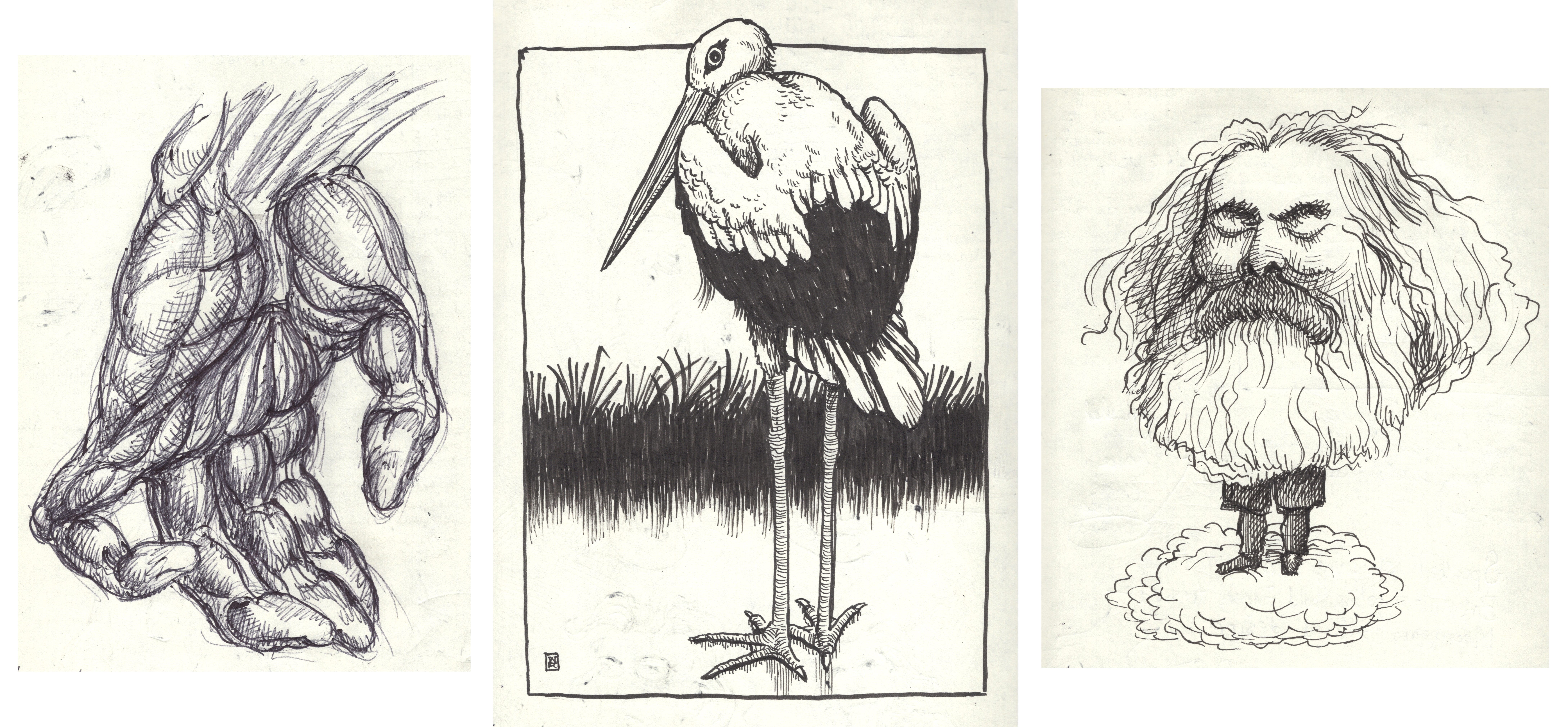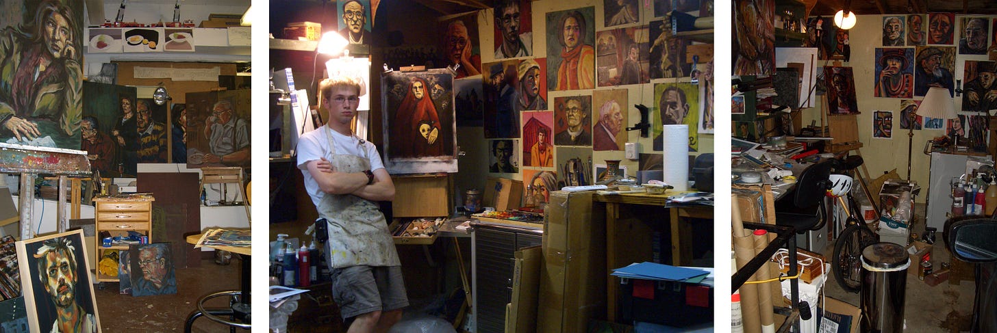 This kind of evolution is evident as I look back at some of my previous studios. Starting in college and in the years to follow, my first couple of studios initially caused me to fret over their perfect arrangement until they eventually settled into a compact but effective space for painting. They were full of various easels and a general gregarious creative and cluttered mess. However, as my interests started shifting toward ink drawings and illustration, my studio slowly adapted and started to behave itself out of respect for the relative cleanliness that working with ink on paper required.