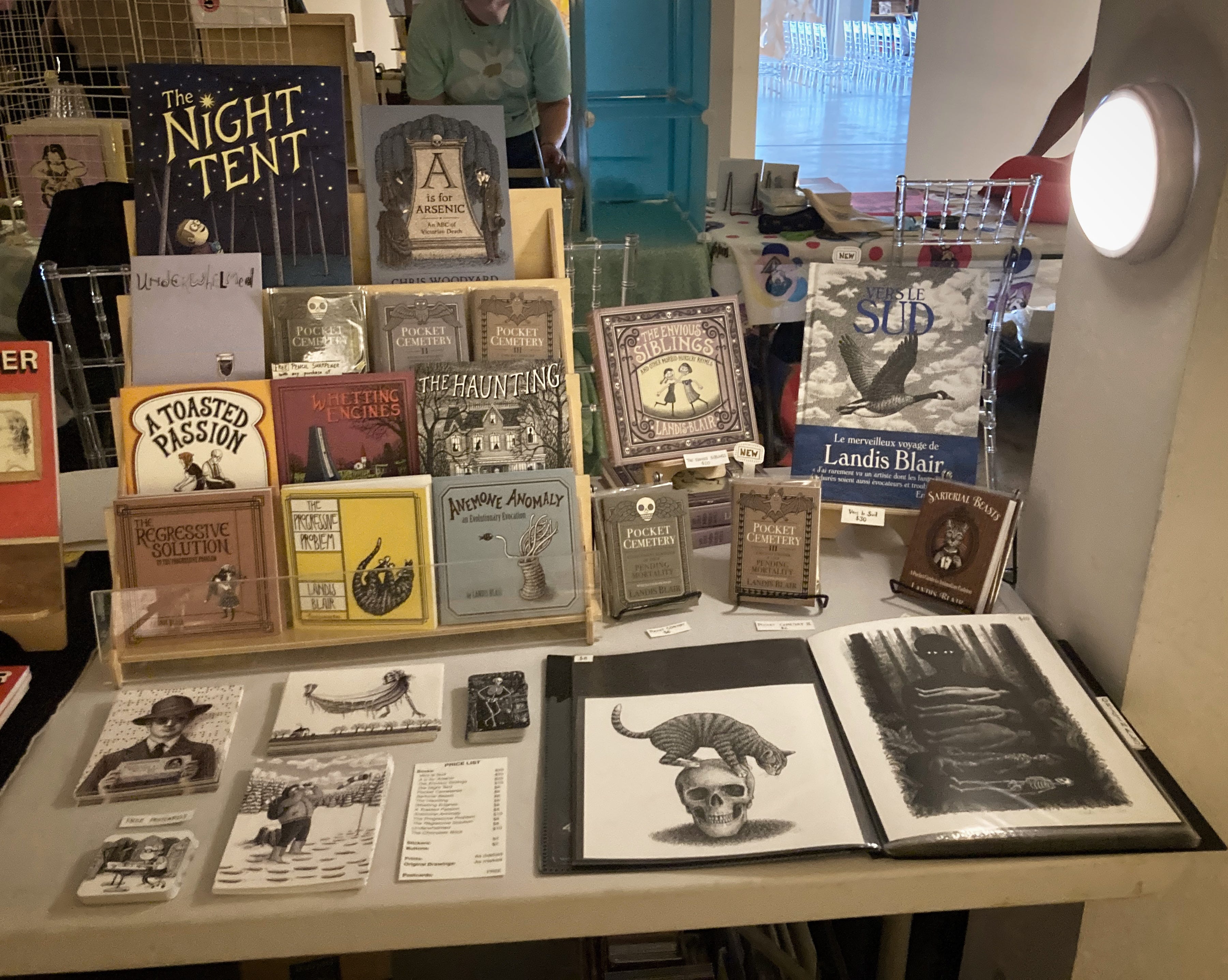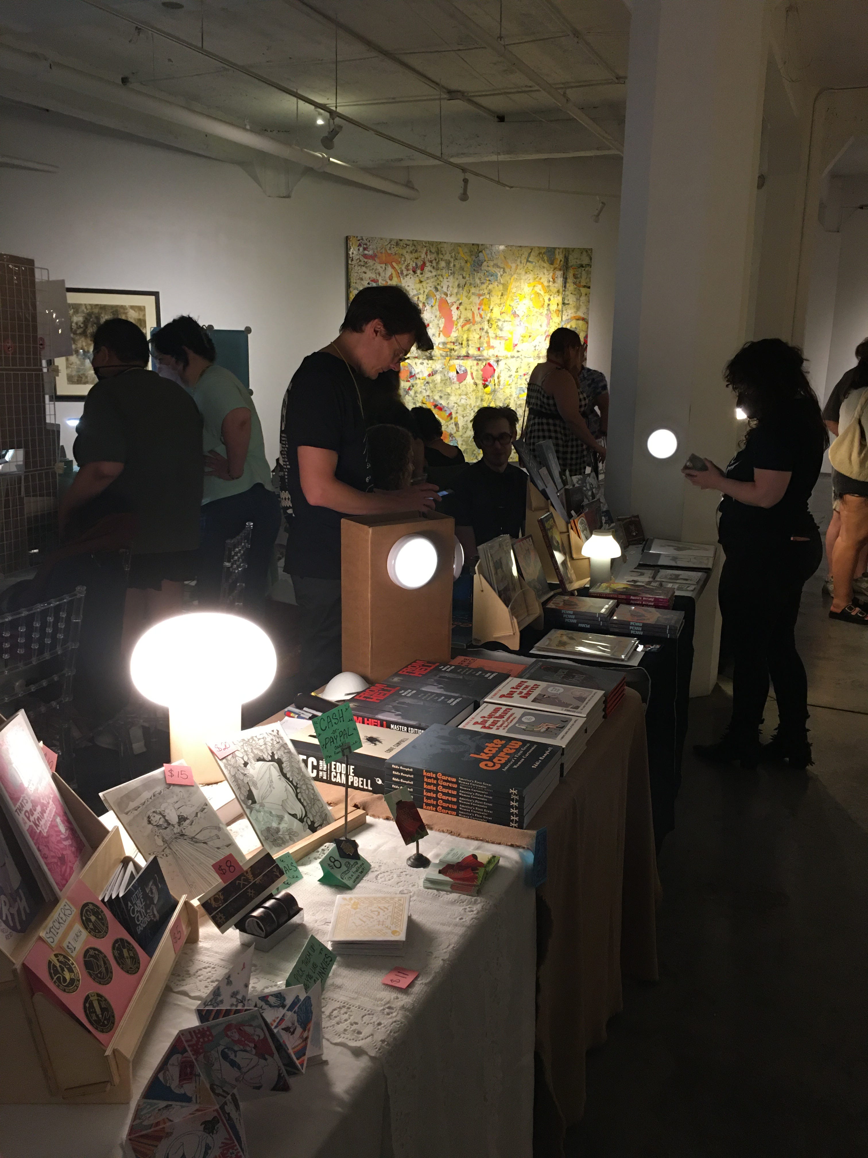 This year’s show had a few snags–most notably the lack of light on the first floor and the need of battery-powered supplements–but it was still a wonderful weekend. I was fortunate to be tabling next to Karl Stevens and Eddie Campbell, both of whom are world class crosshatchers that I deeply admire. In light of this–or rather in the lacking light–someone dubbed our little stretch of tables “Crosshatcher’s Row.”